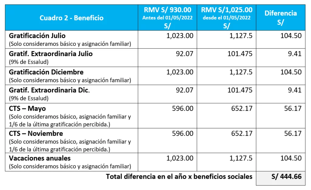• También considerar el aumento que significa en sus beneficios sociales = S/ 444.66
